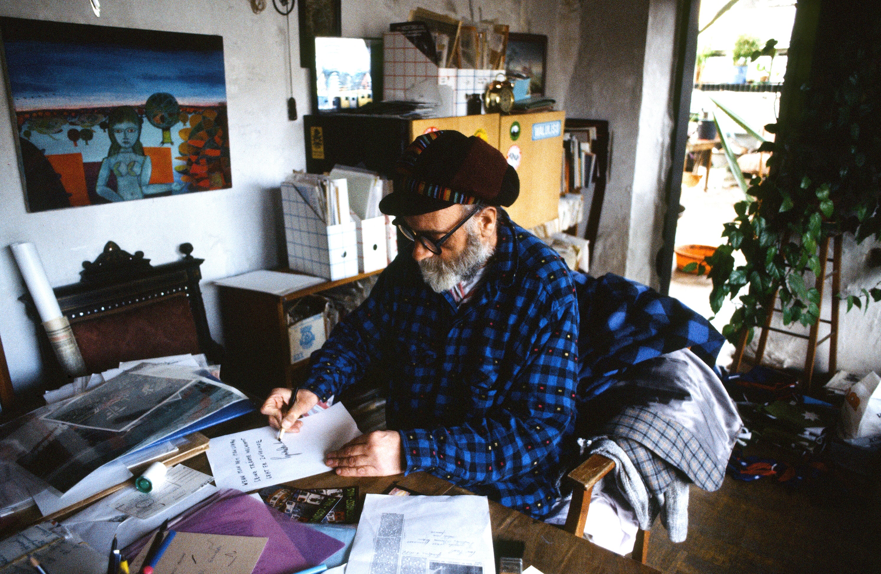 In the 1950s, Hundertwasser turned primarily towards architecture, pioneering an alternative “organic” architecture movement that prioritized rounded, untraditional forms in defiance of the classic rules of architecture. Best known among Hundertwasser’s many projects is the Hundertwasserhaus, an apartment building in Vienna that features a grass-covered roof, a multi-colored façade, a room with an uneven, ergonomic floor, and several large trees growing in the interior.