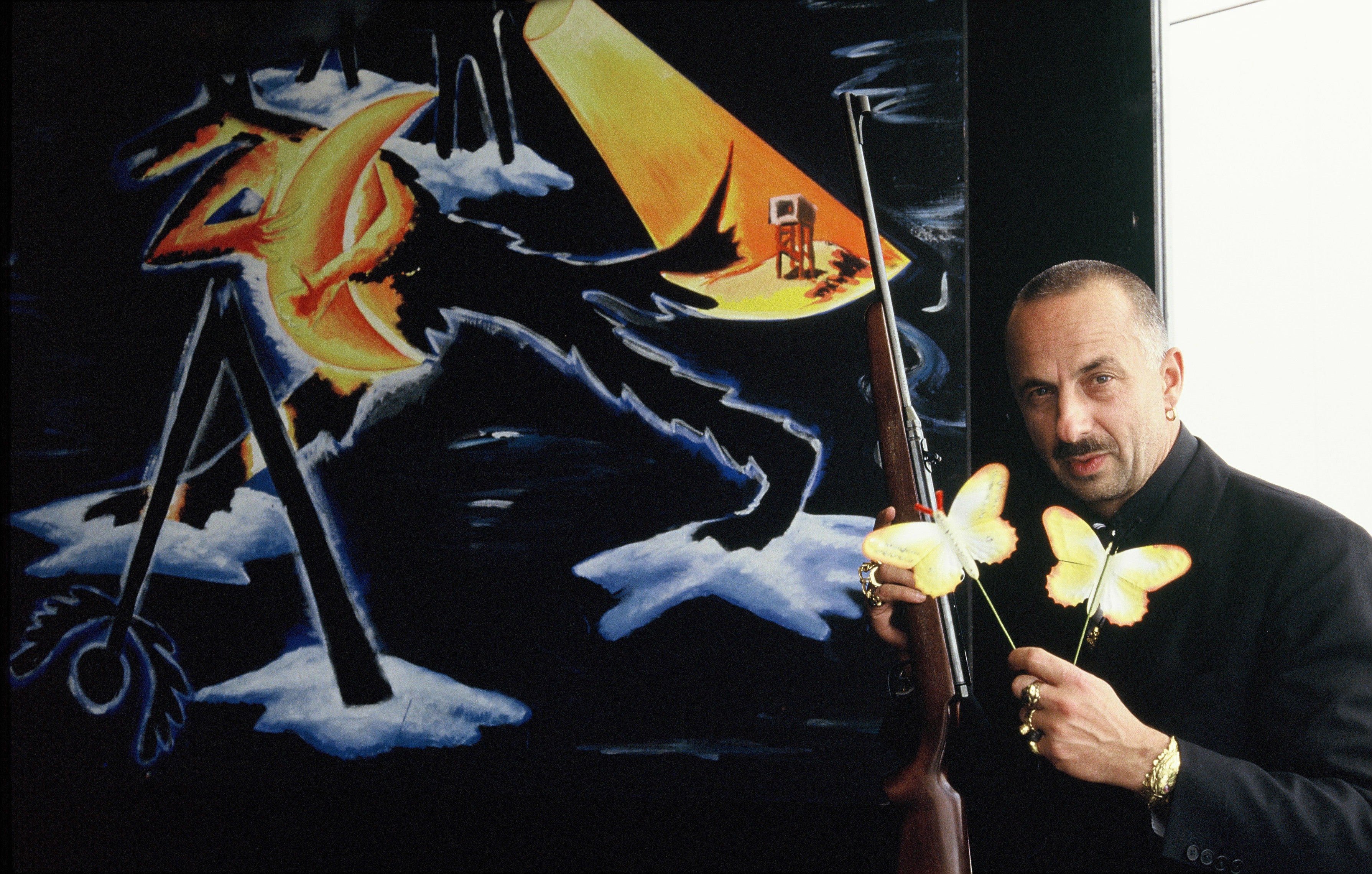 Jörg Immendorff, Shooting-gallery game with political imagery, exhibited 1987.