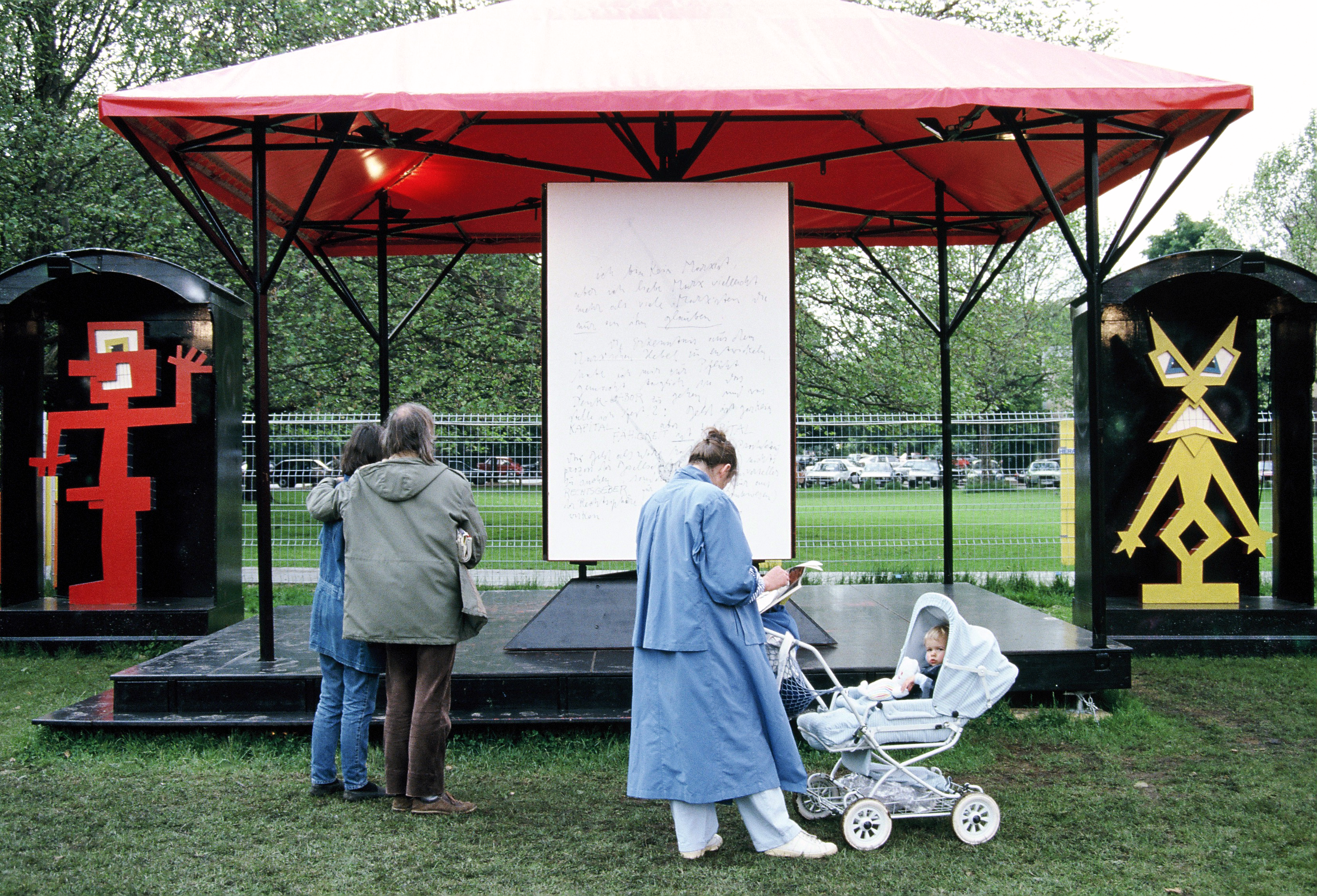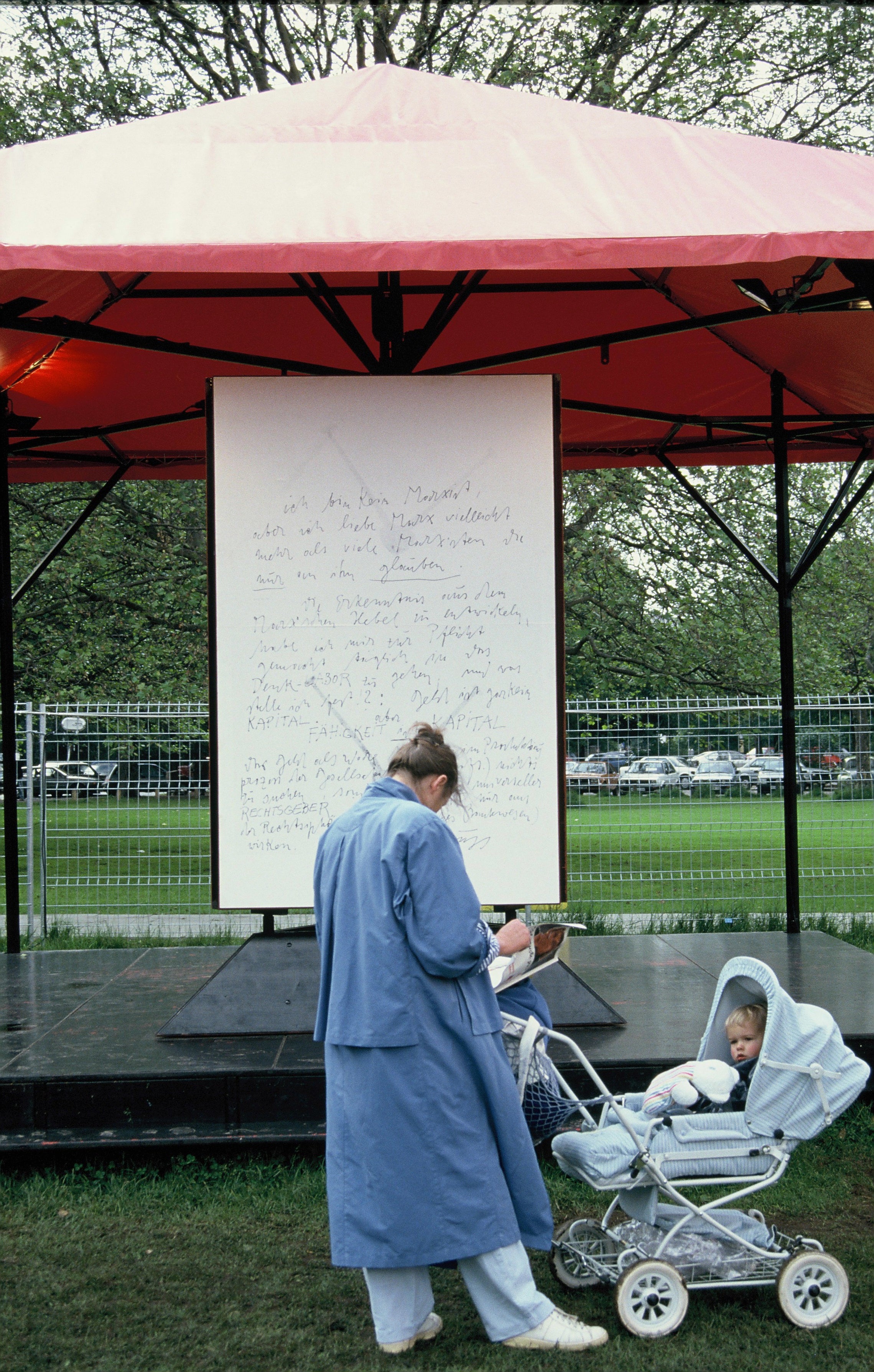 Fairground view: Joseph Beuys, Text on capital and creativity, Luna Luna, Hamburg, Germany, 1987.