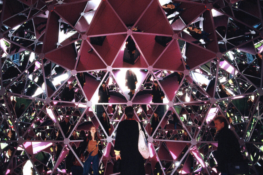 The inside of the dome features a mirrored, geodesic funhouse interior meant to induce spatial hallucinations.